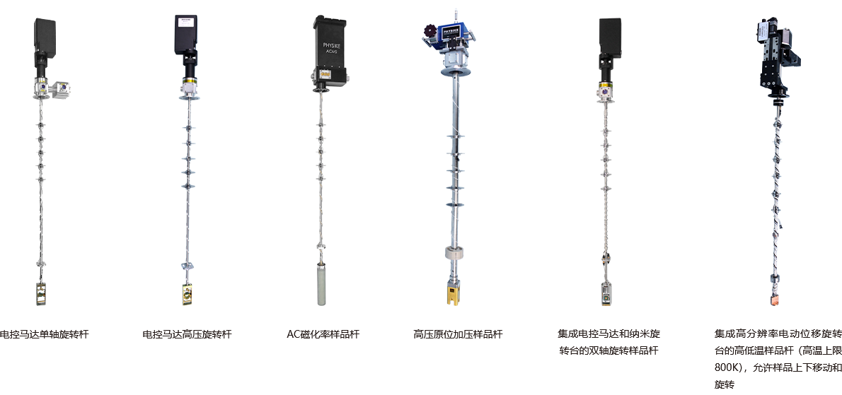 樣品管 | 更大/更小內(nèi)徑樣品管、可見光/紅外/THz窗、X-ray(如Mylar/Kapton窗)、中子透射窗(如減薄鋁/釩/藍(lán)寶石窗) | 樣品桿 | (單/雙)軸旋轉(zhuǎn)樣品桿、帶線性操作器樣品桿、原位調(diào)壓樣品桿、真空型樣品桿 |