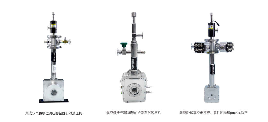 干式閉環(huán)顯微低溫系統(tǒng)(Qcryo-S-300),內(nèi)部集成金剛石對頂壓機(jī)和雙氣膜原位調(diào)壓機(jī)構(gòu),匹配同步輻射光源,用于低溫高壓X-ray測試