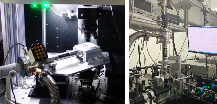 S-300低溫恒溫器內(nèi)置納米定位臺和鏡頭,采用消除液氮Bubbles管線減小震動和漂移(左圖)